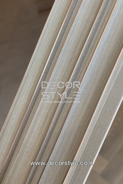 חיפוי קיר דמוי עץ בגוון שמנת עם פסים רוז גולד וטקסטורת עץ ייחודית